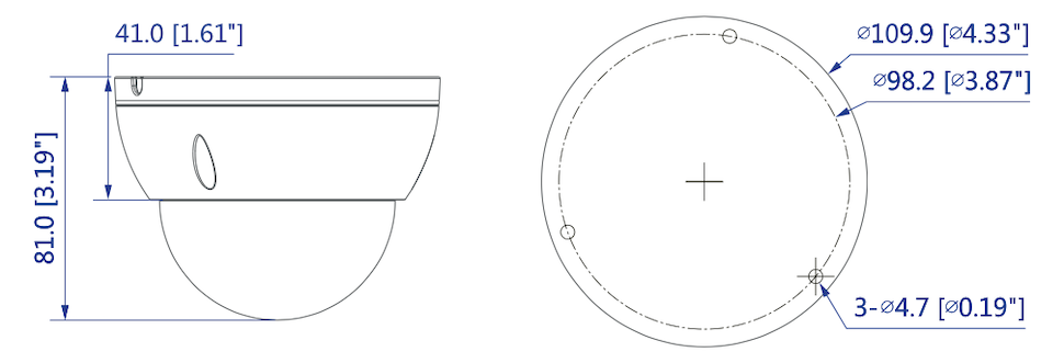 2.8 mm Linse für einen horizontalen Blickwinkel von ca. 102°